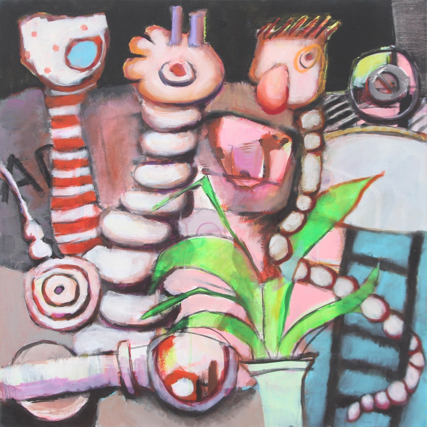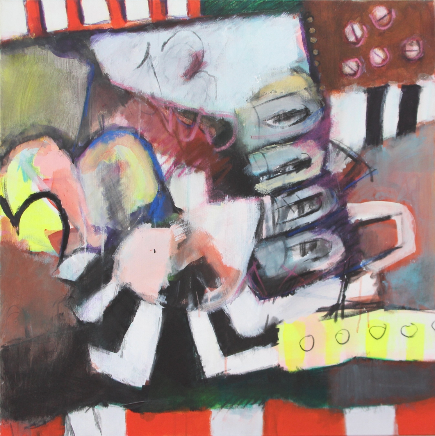 GHOSTS IN THE CANTEEN acrylic and charcoal on canvas 75 x 75 cm