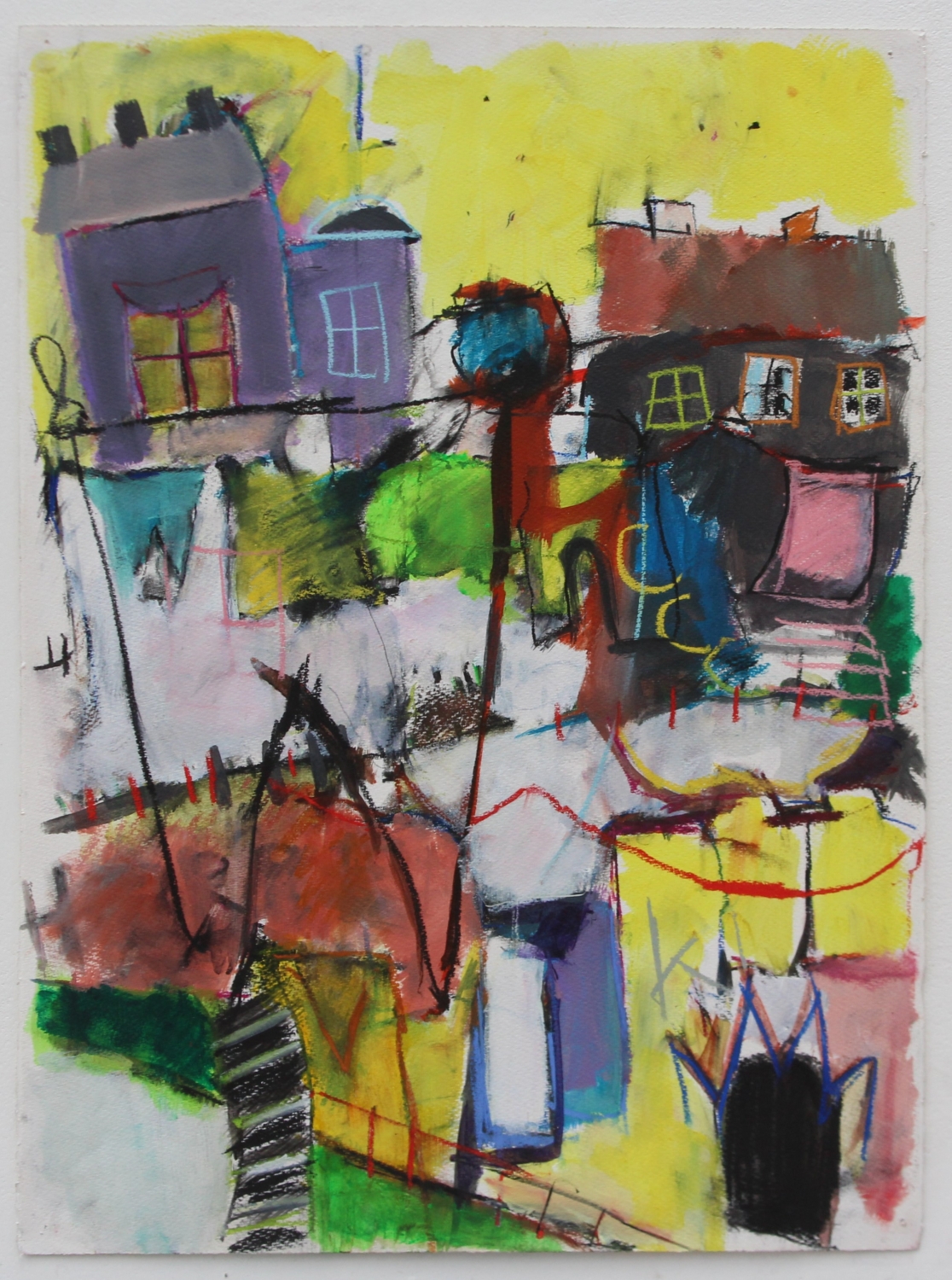 WASHING LINE mixed media on board 60 x 60 cms